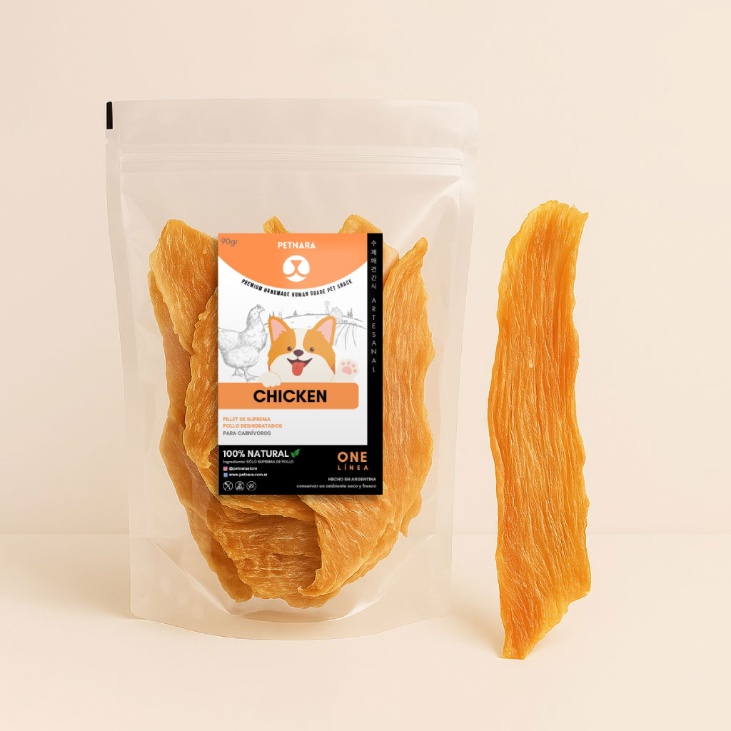 Snack Saludable para Perros con sabor a pollo grillado. Elaborado con carne fresca de pollo.
